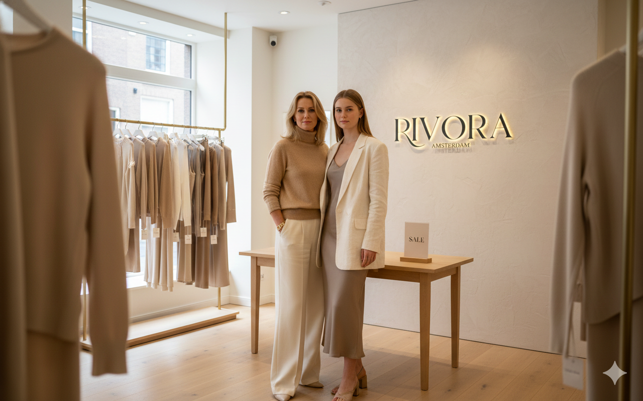 Sinds 2010 werken wij – moeder en dochter – met liefde samen aan Rivora Amsterdam. Wat begon als een gedeelde passie voor stijlvolle eenvoud, groeide uit tot een collectie die staat voor kwaliteit, verfijning en tijdloze kracht.